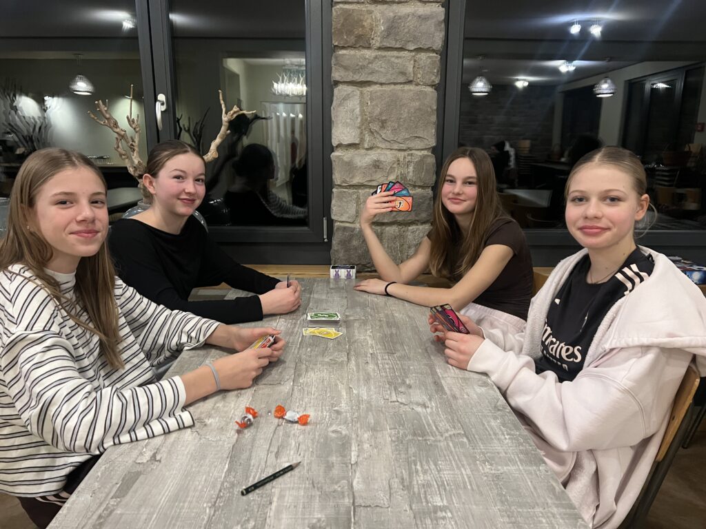Als Abendessen gab ein köstliches Gemüserisotto. Das Abend Programm – diesmal organisiert von der Klasse 13 – war ein Spieleabend, mit vielen verschiedenen Spielen wie Uno (Flip), Monopoly, Werwölfle, und vieles mehr. Der Tag endete wie der vorherige – mit Schlafen gehen.
