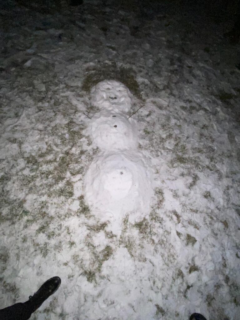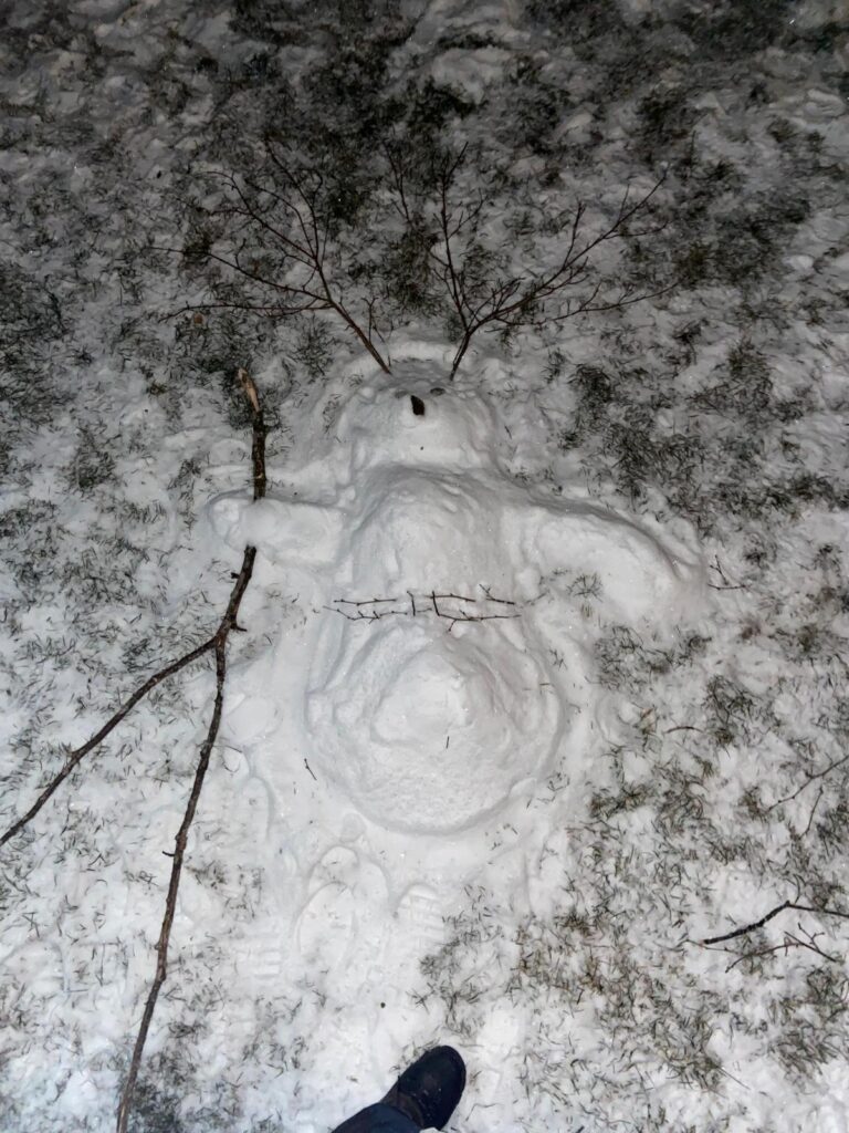 Am Abend gab es Spaghetti mit verschiedenen Saucen – lecker! Nach dem Abendessen gingen wir bei wunderschönem klarem Sternenhimmel spazieren und danach gab es – von der Klasse 14 organisiert – einen Schneemänner/-frauen Wettbewerb. Das war gar nicht so einfach, da es nicht sehr viel Schnee gab. Umso kreativer waren die Gruppen 😉 Es gab 3 Preise, für Schönheit, Kreativität, und beides zusammen. Am Ende des Tages gingen Schüler:innen und Leiter:innen müde schlafen.