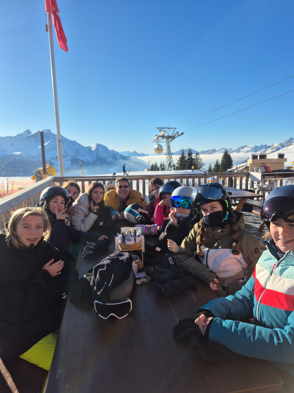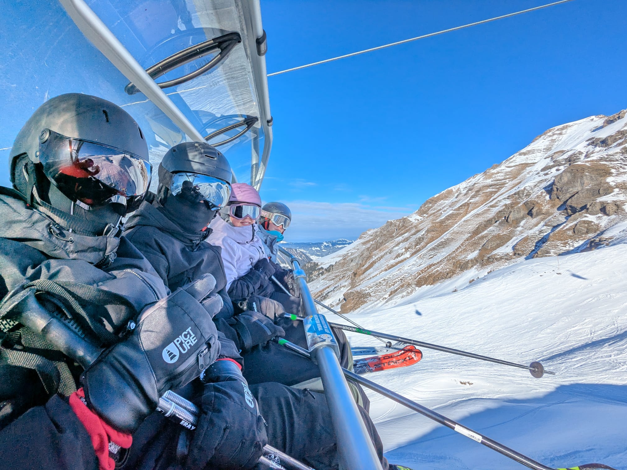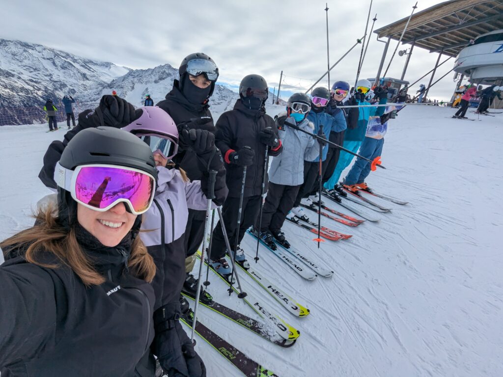 Montag: Wir trafen uns alle frühmorgens beim Hornercar-Terminal in Tafers, haben unsere Skitaschen eingepackt und sind losgefahren.