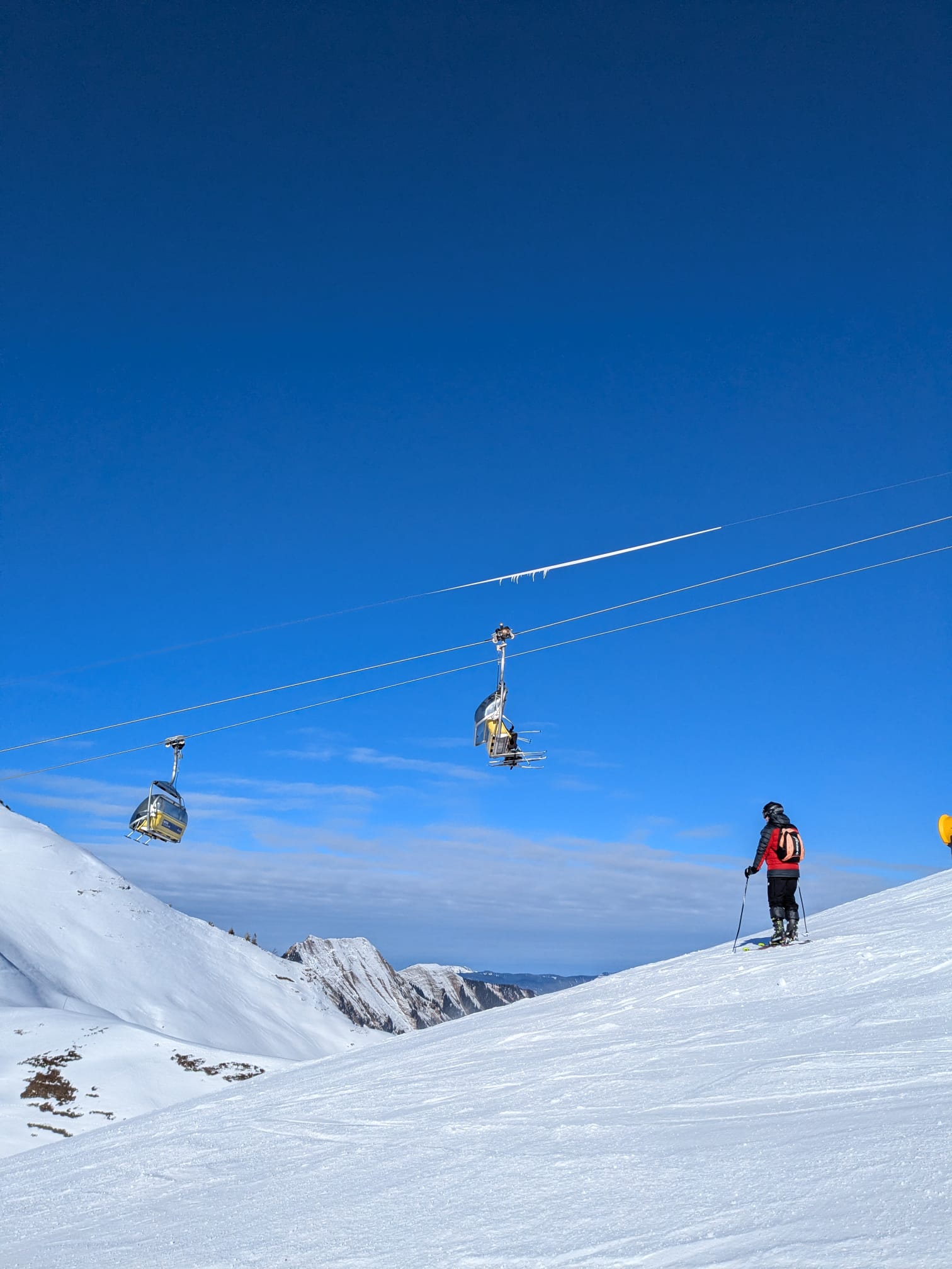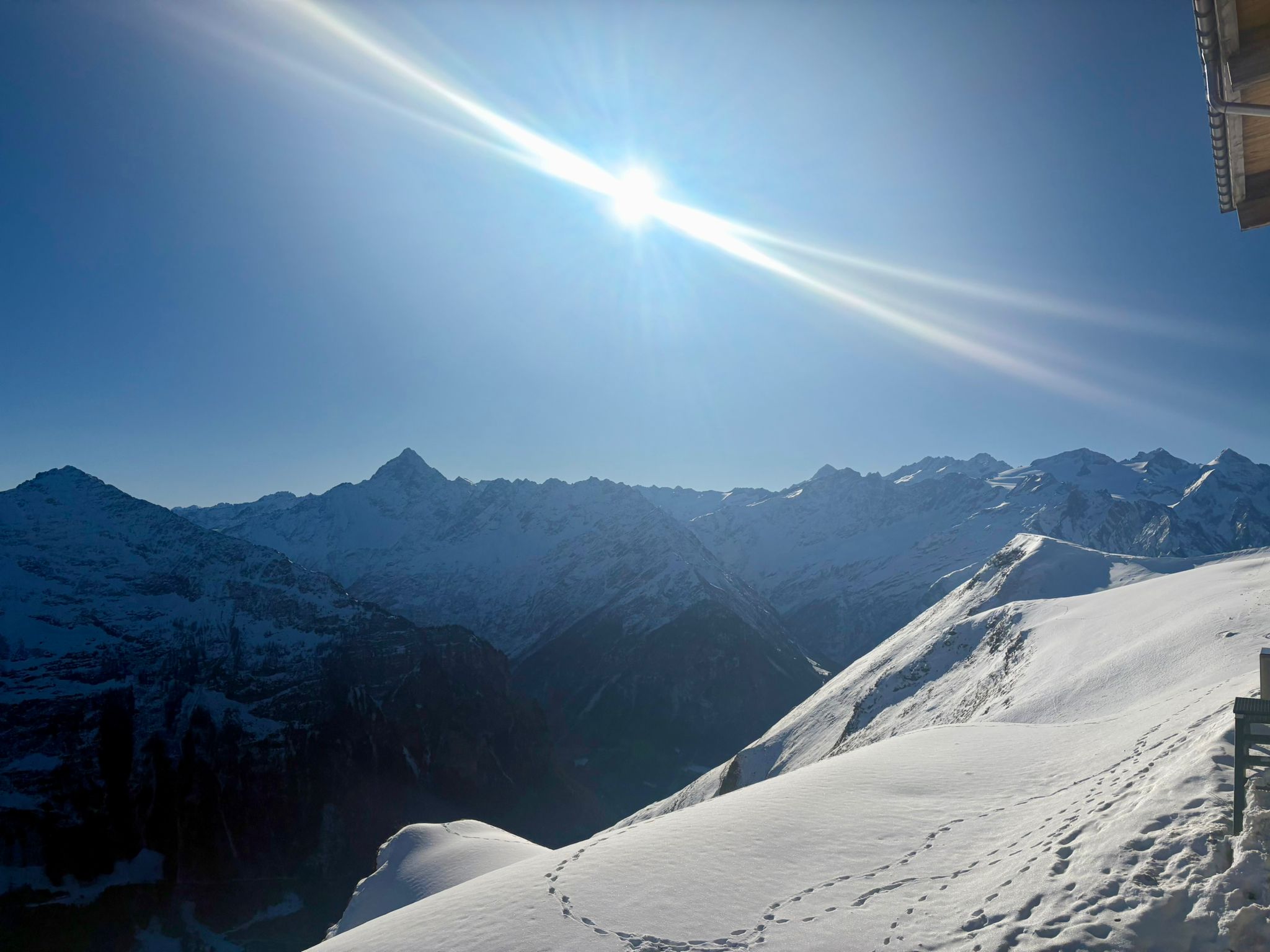 Die Fahrt ging insgesamt etwa 2h. Als wir ankamen, mussten wir alles Gepäck rausholen und runtertragen zu unserem tollen Lagerhaus. Das Wetter hat uns klar und freundlich begrüsst. Nachdem wir kurz unsere Zimmer eingerichtet haben, gingen wir sofort auf die Pisten.